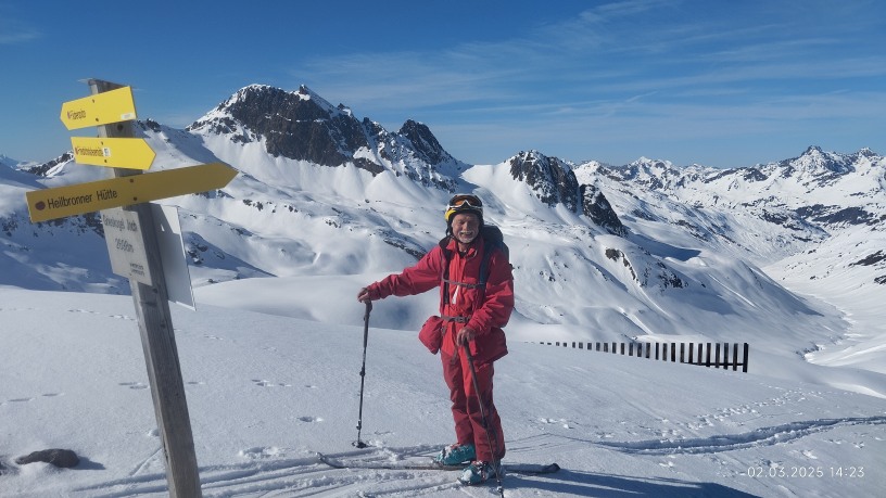 Tour 3 Heilbronner Hütte 2.308 m Verwall. Aufstieg von Partenen 1.200 hm, mit schwerem Rucksack lang und anstrengend. Die unbewirtschaftete Winter-Hütte ist hervorragend ausgestattet und liegt in einem Gebiet mit vielen nah gelegenen Gipfeln, die meist eher leicht sind und oft wegen ihrer Hangrichtung Nord lange Pulverschnee bieten. Teilnehmer Claus Michelfelder, Bruno Seeh, Helmut Müller, Michl Lamparter, Karl Zepf, und Bernd Rudischhauser Fr.-Di, Christian und Jürgen Tauch, Hubert und Raphaela Schiele Sa-Di, Essen: Freitag Bruno Flädlesuppe, Helmut Ackersalat und Haller Trampele, Rudl Kuchen. Samstag Claus und Michl Backerbsensuppe, Eisbergsalat, Pilze mit Speck und Knödel, Popkorn, Sonntag: Fips undefinierte Suppe und Hauptgericht, Hubert und Raphaela Salat und Mousse au Chocolat. Montag: Jürgen und Christian Maultaschensuppe, Salat und Kässpätzle, Hubert und Raphaela Vanille Pudding. Wir genossen 5 Tage die uns außer Sonntag (Wind, Schneefall) mit ordentlich bis gutem Wetter und traumhaftem Schnee beglückt haben. Highlight waren Freitag Grüner Grat mit Pulverschnee Abfahrt (obwohl es seit vor Weihnachten nicht geschneit hatte) Montag nach Schneefall die Tour über die Lücke südlich vom Schrottenkopf hinten runter ins Ochsental (oben im Steilhang wie befürchtet ein Schneebrett) und südlich hinauf zur Fädnerspitze 2.788m mit toller Aussicht in die Silvretta. Alle Abfahrten in unberührtem Traum-Pulverschnee bis unter die Hütte und Gegenanstieg. Am letzten Tag wieder die Tour über die westliche Fluhspitze 2.653m mit Pulver-Abfahrt nord-westlich bis zur Straße nach Partenen. Ab und bis Partenen mussten wir zum ersten mal in Jahren die Ski mangels Schnee ca. 200 hm tragen. Ich hoffe ich schaffe es mal noch Bilder und Videos einzustellen.