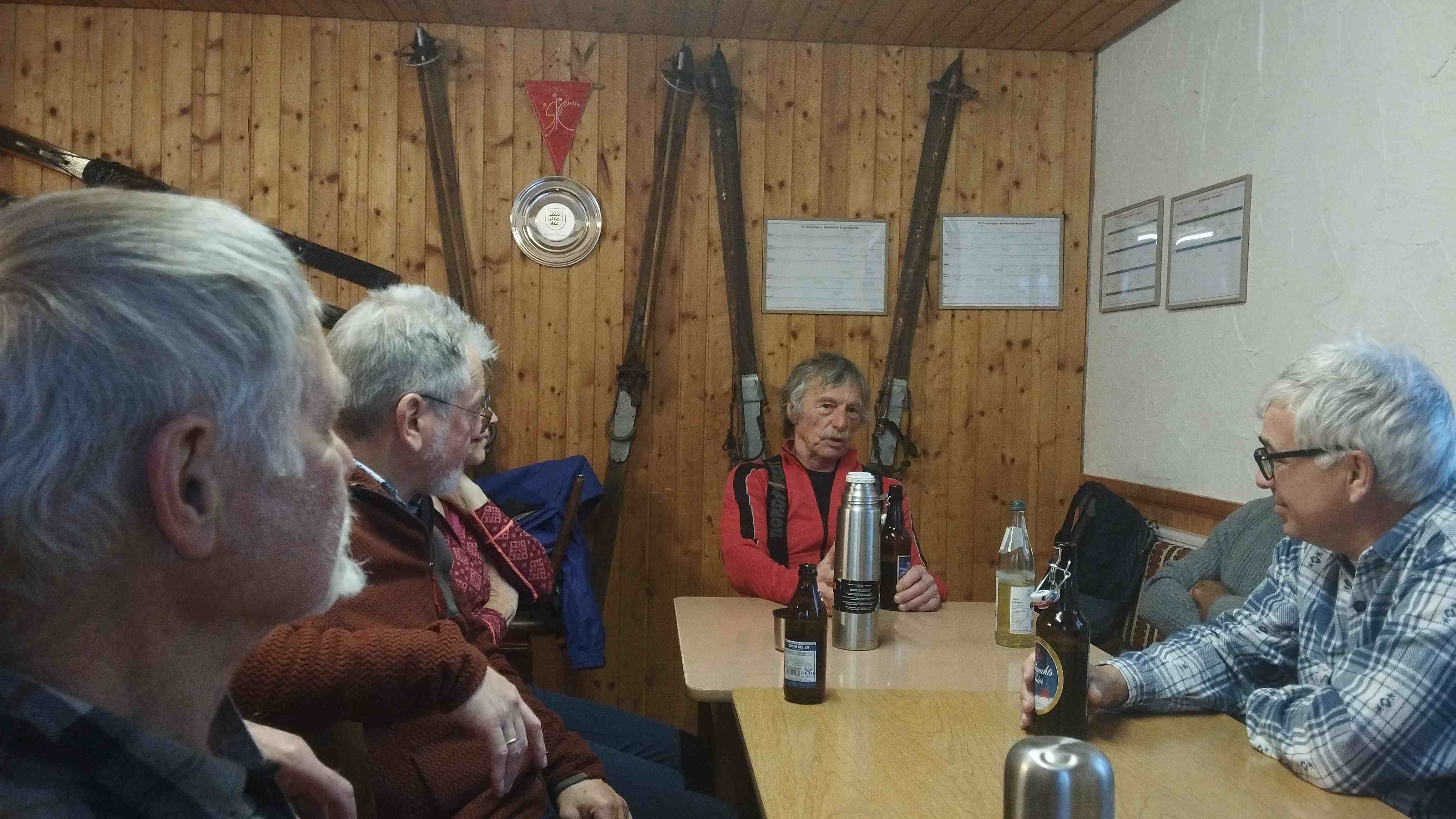 dazu Singen und Filme von vergangenen Skitouren - Schwerpunkt Videos 2012 Panixer Pass Hütte mit Hausstock und 2016 Mt. Velan. 16 Teilnehmer Gunter, Claus und Gabi, Konrad, Helmut, Bruno, Hubert und Raphaela, Rike und Fips, Norbert, Pit und Eva, Jürgen und Regina, Arno. Es war also eine große Sause.
